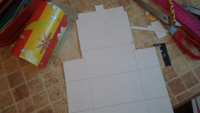 Два сундука сделаны по инструкции из сети, правда, они должны быть зеленого или красного цвета, с нанесенным орнаментом и узорами, но мы нашли декоративный картон позитивных расцветок и сделали из него)